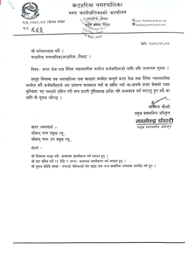 करार सेवा तथा दैनिक ज्यालादारीमा कार्यरत कर्मचारीहरुको लागी अति आवश्यक सूचना !