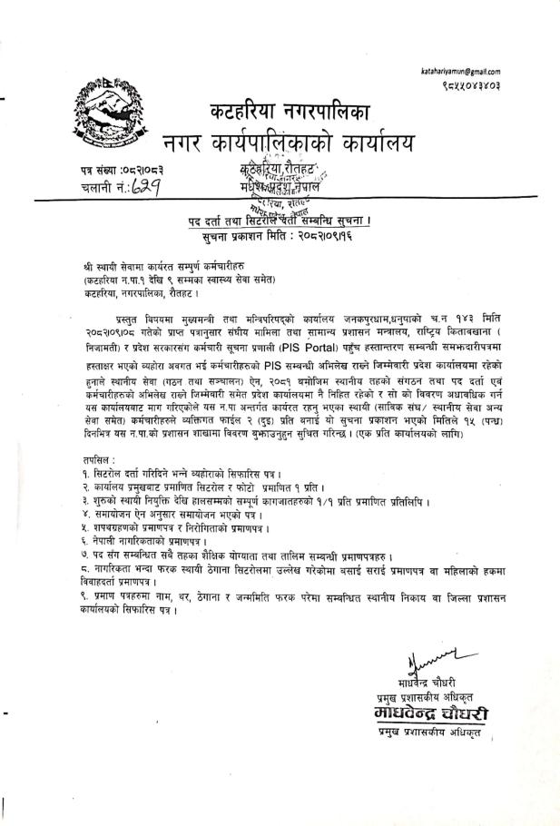 पद दर्ता तथा सिटरोल दर्ता सम्बन्धि सूचना !(सुचना प्रकाशन मिति - २०८२।०९।१६)
