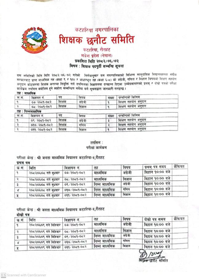 शिक्षक पदपूर्ति सम्बन्धी सूचना