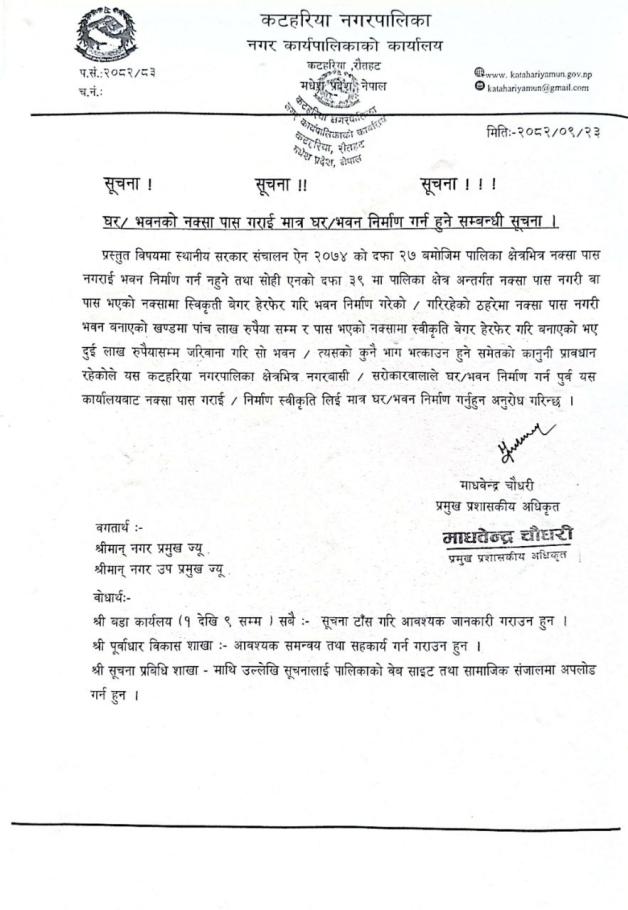 कटहरिया नगरपालिका नगर कार्यपालिकाकाे कार्यालय