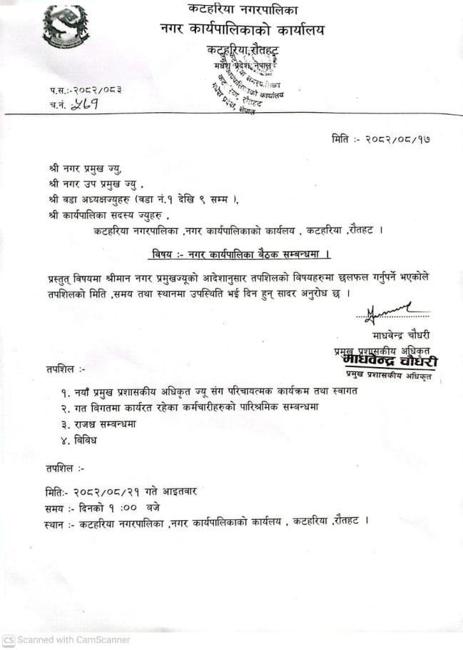 नगर कार्यपालिका बैठक सम्बन्धमा !